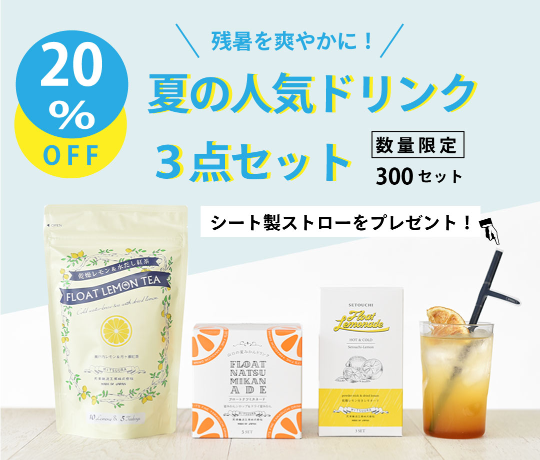 水に溶かすだけで本格レモネードを手軽に飲むことができるレモンパウダーとフロートレモン(乾燥輪切りレモン)がセットに。